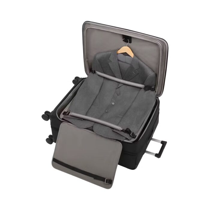 - Optimized organization using dedicated business compartments, essential device pocket and smart integrated garment sleeve.