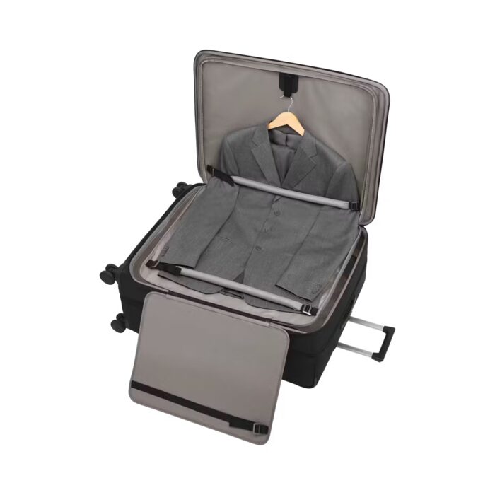 - Optimized organization using dedicated business compartments, essential device pocket and smart integrated garment sleeve.