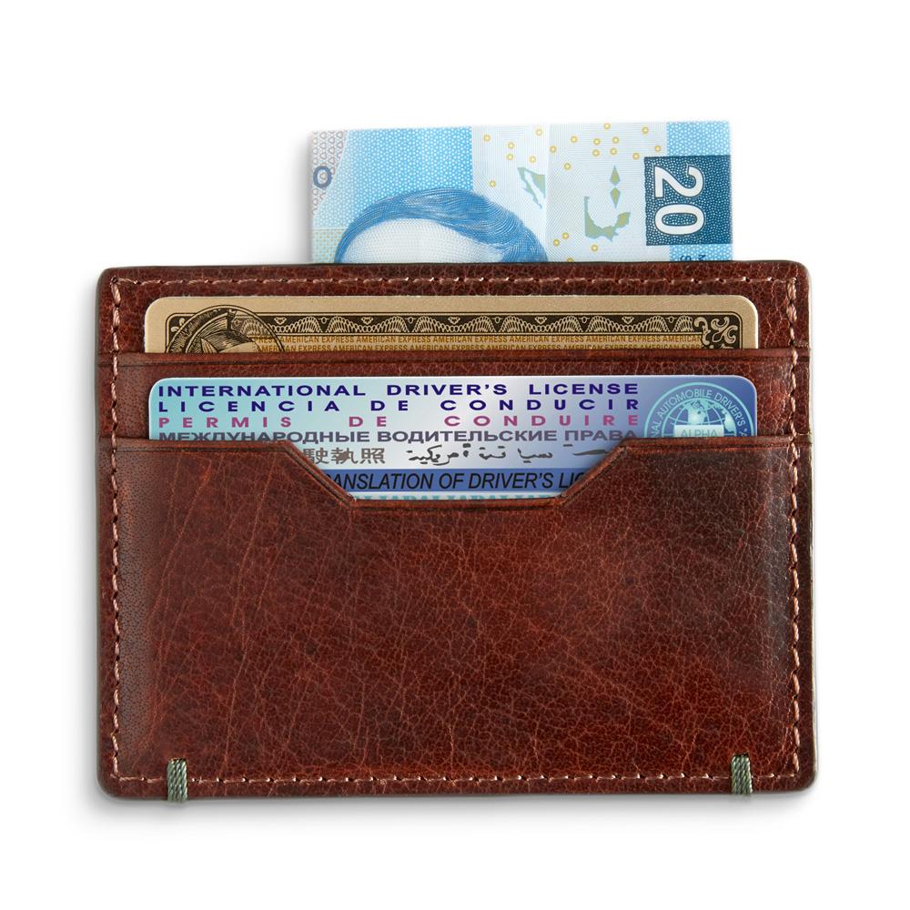 A slim card case designed with five card slots, two on each side plus one in the top. By LW Select.