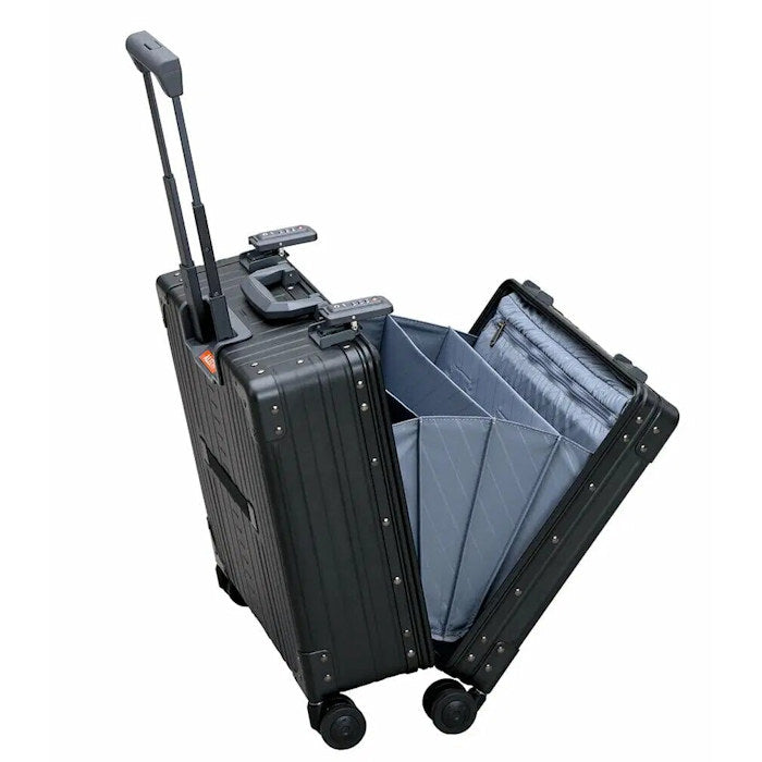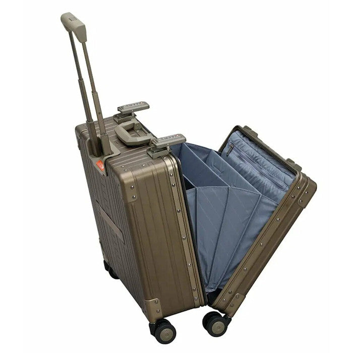 17" Wheeled Deluxe Business Briefcase made of Aluminum thats extremely durable and lightweight. Secured with steel riveted construction and double reinforced corners for extra strength.