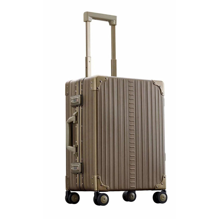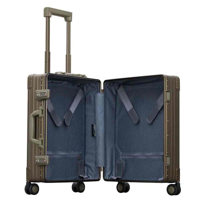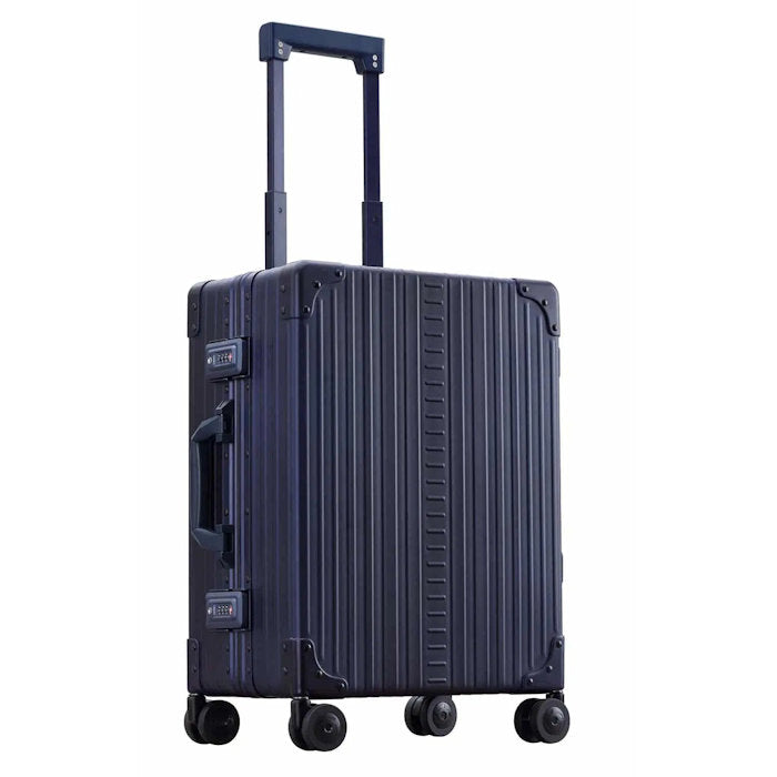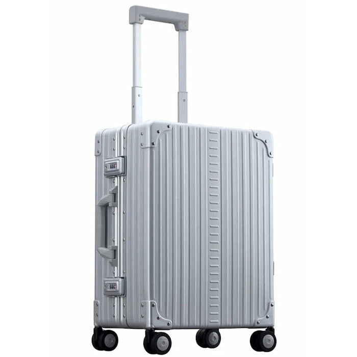 Aleon's 21" Carry-On meets size requirements for most domestic airlines. This Aircraft Grade Aluminum hard body case is extremely durable and lightweight. Secured with steel riveted construction and double reinforced aluminum corners for extra strength.