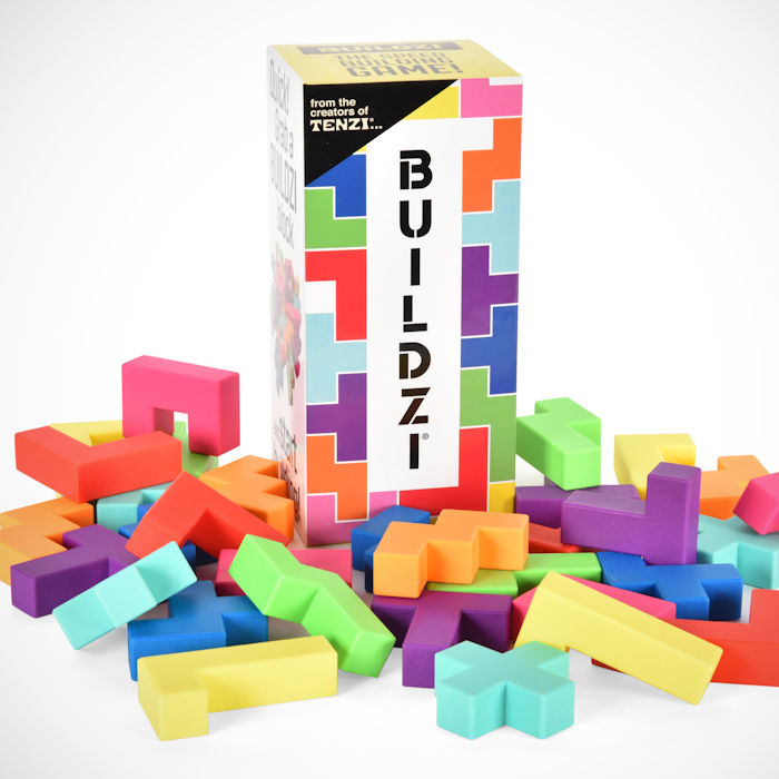 BUILDZI Block Game by the Makers of TENZI, Carma Games! The fast-stacking, nerve-racking, block-building game! Quick, grab a block and start building. Create your tower first, but "careful" don't let it tumble. Lots of ways to play.