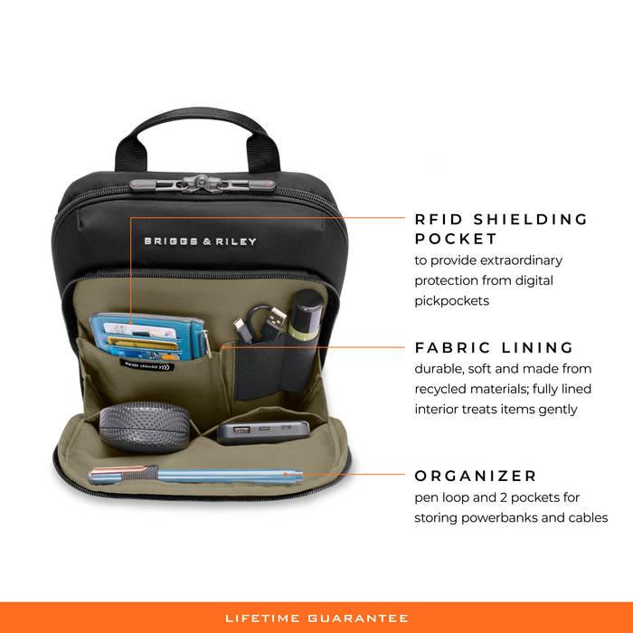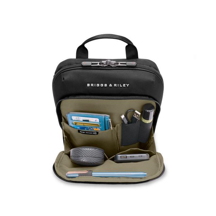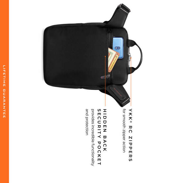 Front compartment equipped with organization and a RFID shielding to provide extraordinary protection from digital pickpockets.
