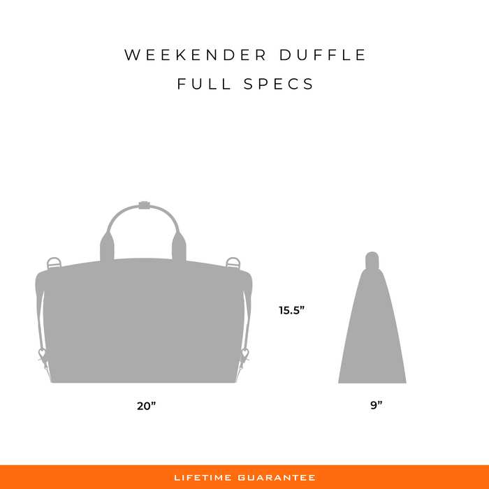 This classic Weekender Duffle is ideal for a long weekend or everyday use. It's sleek and spacious design keeps everything accessible for hassle-free retrieval.