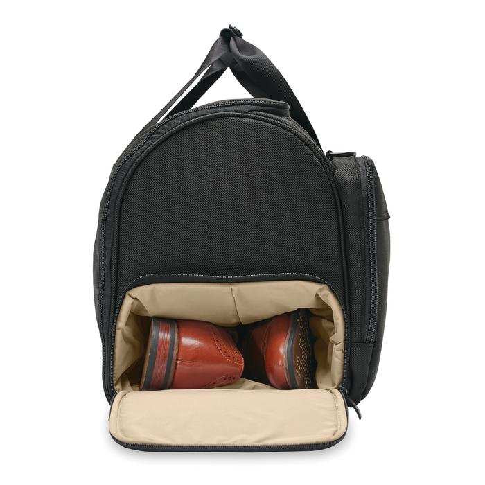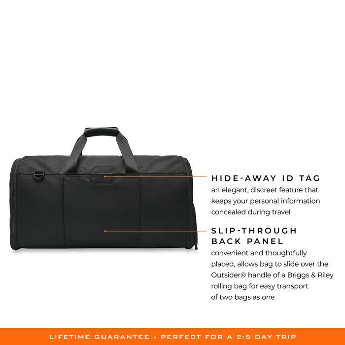 - Transport two bags as one with the slip-through back panel. Slide bag over the Outsider® handle of a Briggs & Riley wheeled luggage.