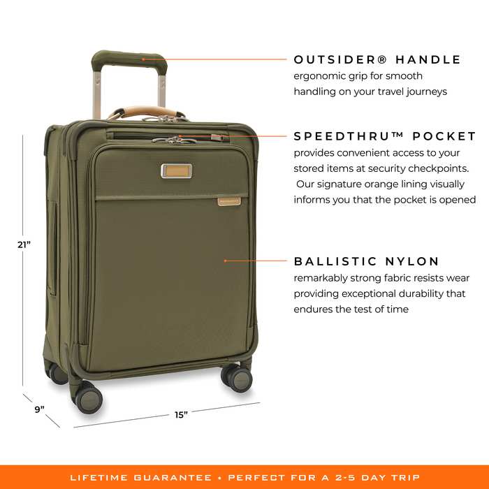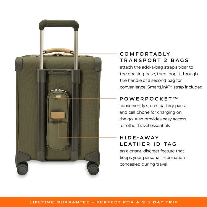- Briggs & Riley lifetime guarantee on all functional aspects of every bag