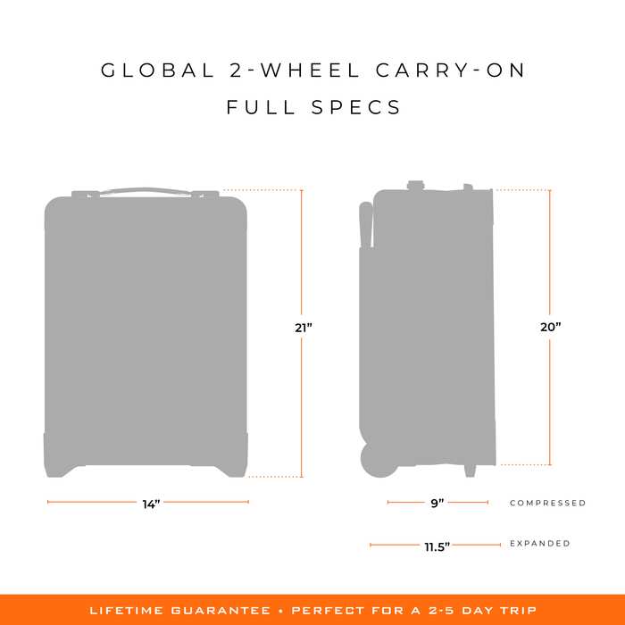 The perfect travel companion, the Global 2-Wheel Carry-On offers remarkable capacity with it's wide body and CX technology, allowing you to carry on with confidence. Ideal for international travel.