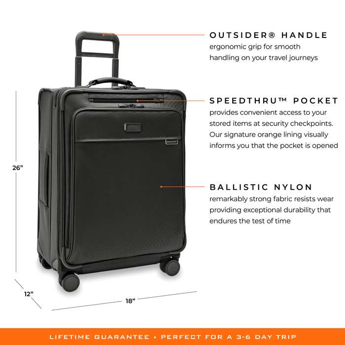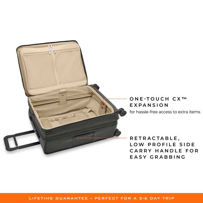Take advantage of Briggs Medium Expandable Spinner for your longer journeys. With its innovative CX technology, you can pack more when you need it. It's impeccably crafted with all the features you come to rely on from the Baseline collection.