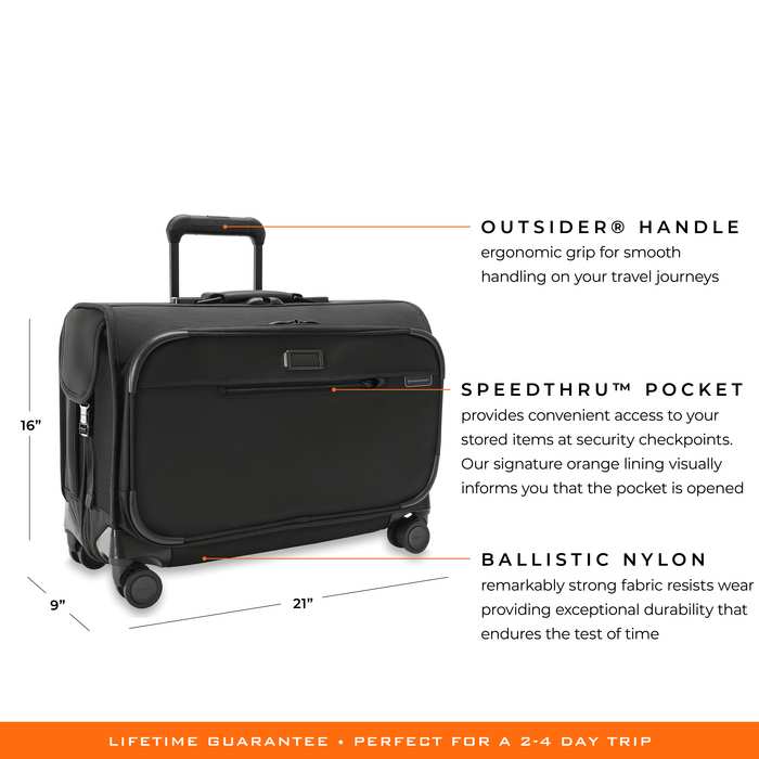 - Briggs & Riley lifetime guarantee on all functional aspects of every bag