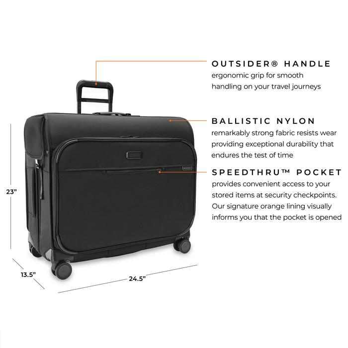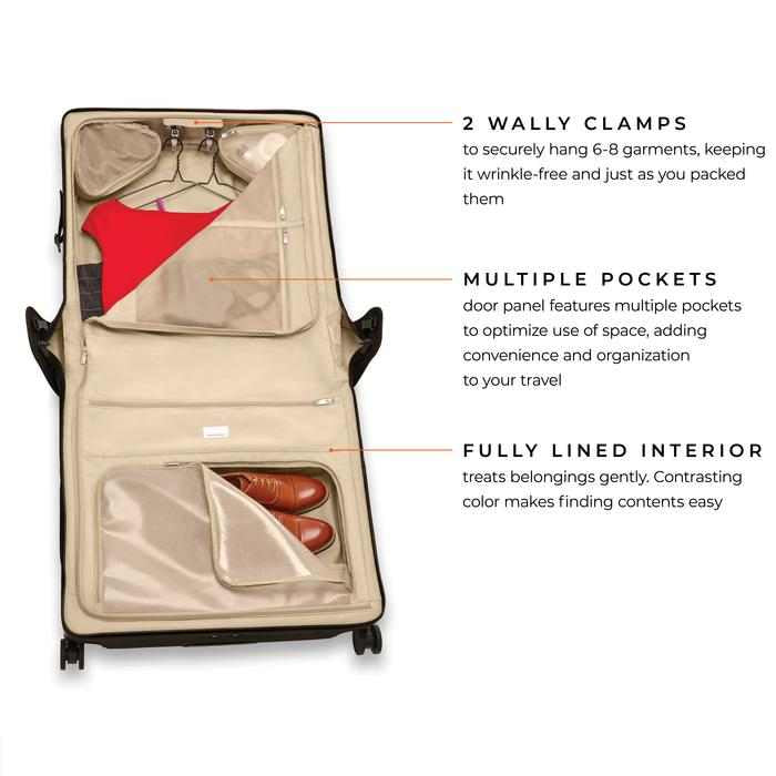 Deluxe Wardrobe Spinner is a sophisticated solution to transport your formal wear and closet necessities. Whether you're on a business trip or cruise, it's the perfect traveling companion.