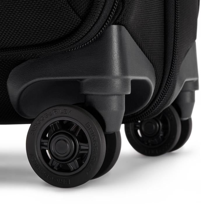- Proprietary shock absorbing spinner wheels offer 360° maneuverability and smooth quiet gliding for effortless navigation.