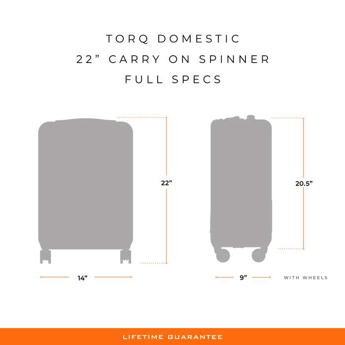 Stop fumbling with zippers and cords and switch to our Torq Domestic Carry-On Spinner. With a USB port and patented hinged front pocket, this bag will be your go-to for all destinations. Lightweight and resilient, take it with you to the city or the beach -- wherever you roam.