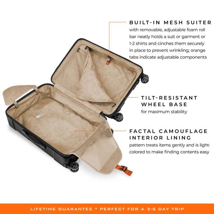 - Outsider® handle provides greater interior capacity and a smooth surface for packing so clothes arrive wrinkle-free.