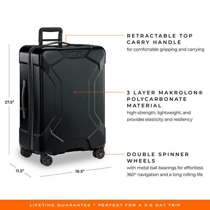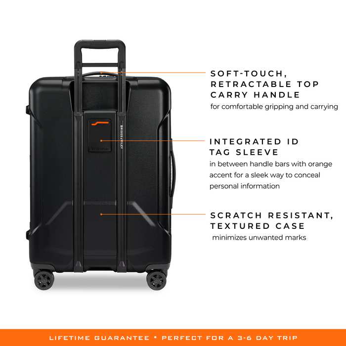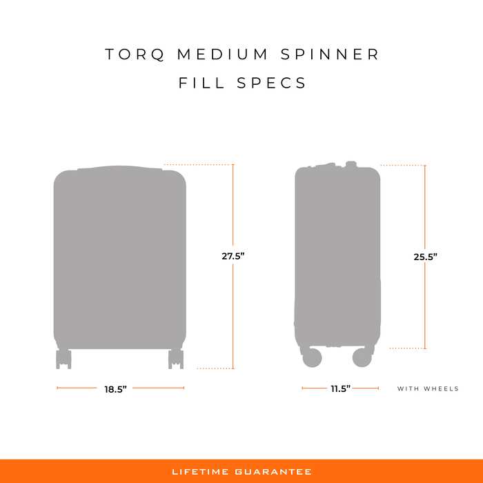 Long gone are the days of the heavy 50/50 hardside suitcase; pack how you want with our 70/30 Torq Medium Spinner. At only 8.9 pounds, this bag doesn't sacrifice weight for space, and is still lightweight enough to glide alongside you.