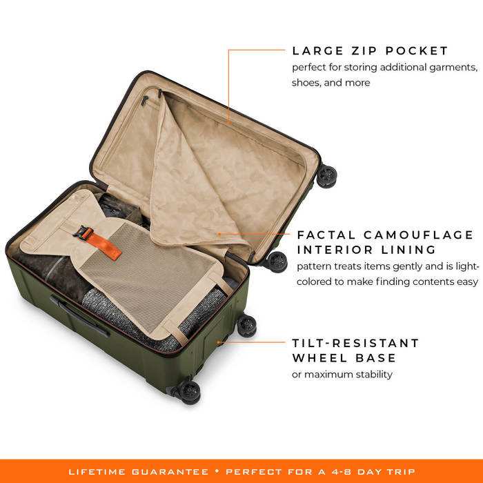 - Outsider® handle provides greater interior capacity and a smooth surface for packing so clothes arrive wrinkle-free.