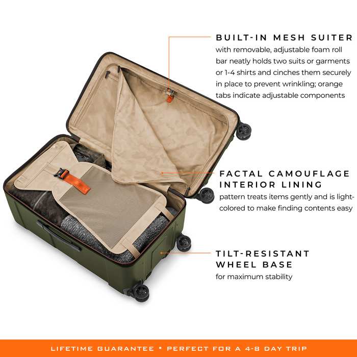 - Cavernous main compartment accommodates a large variety of bulky clothing or odd-shaped items; lid pocket can either be used as a suiter or as additional packing space.
