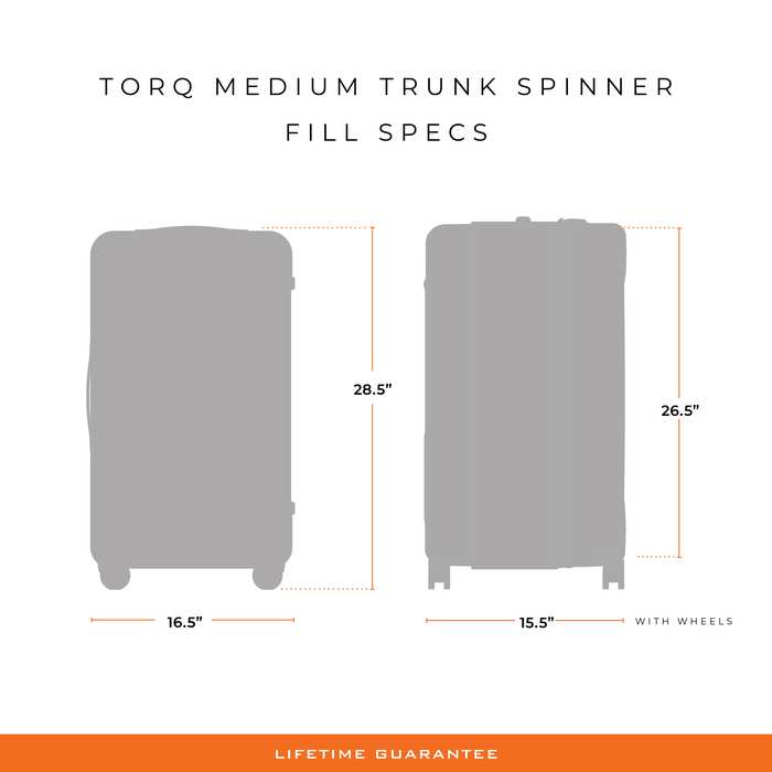 Lighter than a trunk, bigger than a suitcase -- you get the best of both worlds with the Torq Medium Trunk Spinner. The rugged, resilient hardside case means ultimate protection for all your belongings.