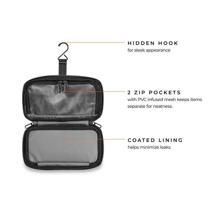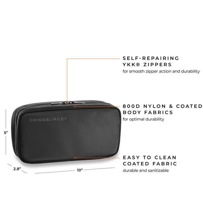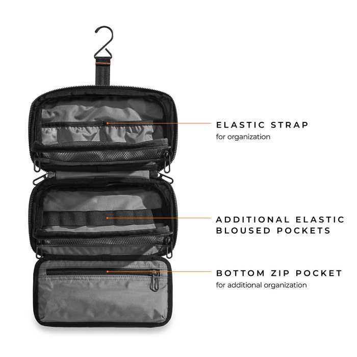 This toiletry kit means serious business. Consider it a mobile home for your grooming essentials. Lightweight & durable, designed with road trip travel in mind. Resilient fabrics withstand heavy duty use and wipe clean with a damp cloth.