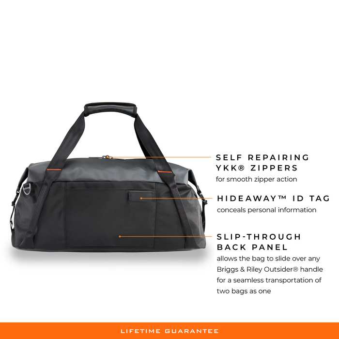 - Slip-through back panel allows bag to slide over any handle for seamless transportation of two bags as one
