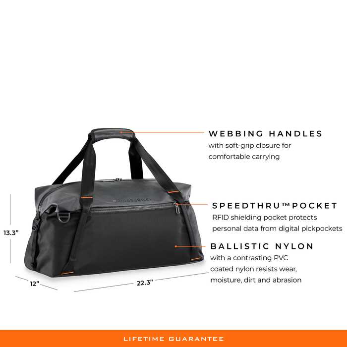 This duffle delightfully delivers custom carrying options. Pack it out with all your needs or cinch it down when carrying just your basics. As a carry-on, weekender, or gym bag, the Cargo Satchel has the versatility, and capacity, to meet all your needs. Black