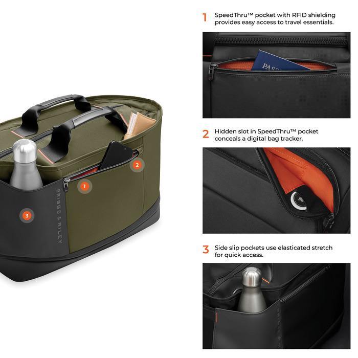 - Hidden pocket in SpeedThru™ conceals a digital tracker to keep tabs on your bag.