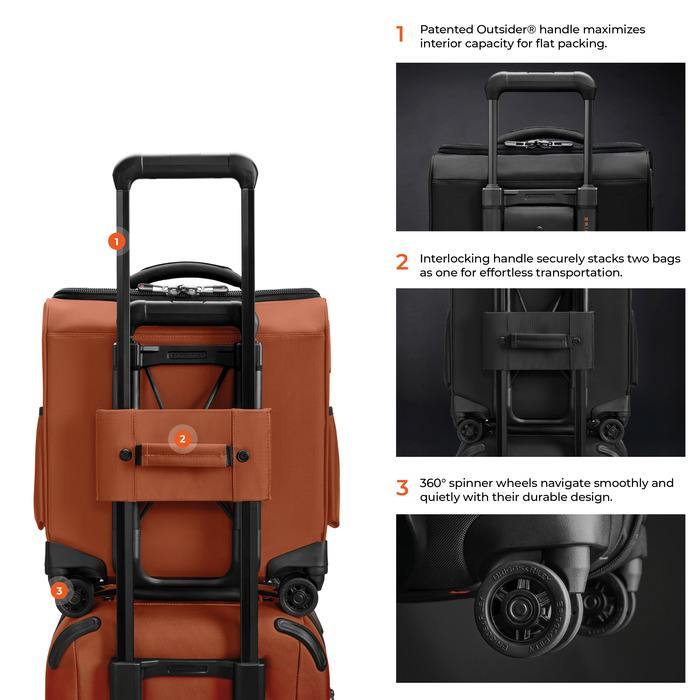 - Patented and iconic, our Outsider® handle provides optimal capacity and a flat packing surface inside to minimize wrinkling