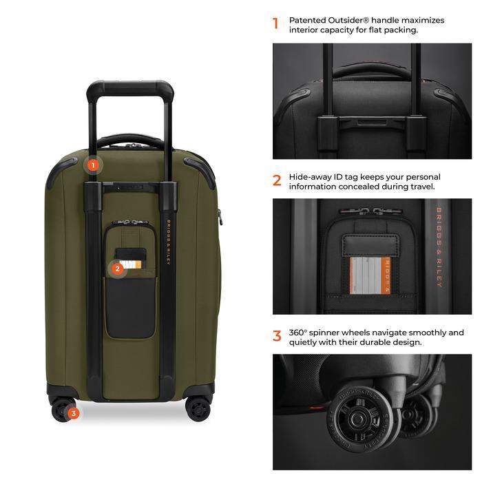 - Patented and iconic, our Outsider® handle provides optimal capacity and a flat packing surface inside to minimize wrinkling