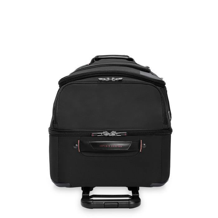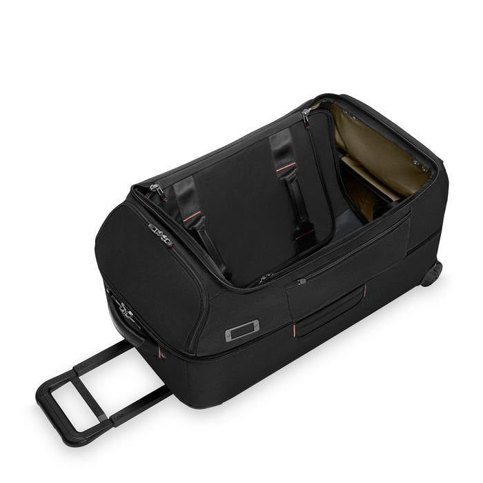 The lightweight versatility and compact storage of a duffle meets the convenience of wheeled luggage. The Medium Upright Duffle features an exterior-mounted Outsider® handle, creating a flat main compartment for tidy packing. To keep you organized on the road, an optional zippered divider creates compartments while an expandable drop pocket adds storage. A PVC-lined pocket separates shoes, towels, and gym clothes from other items, making this ideal for days that see it all.
