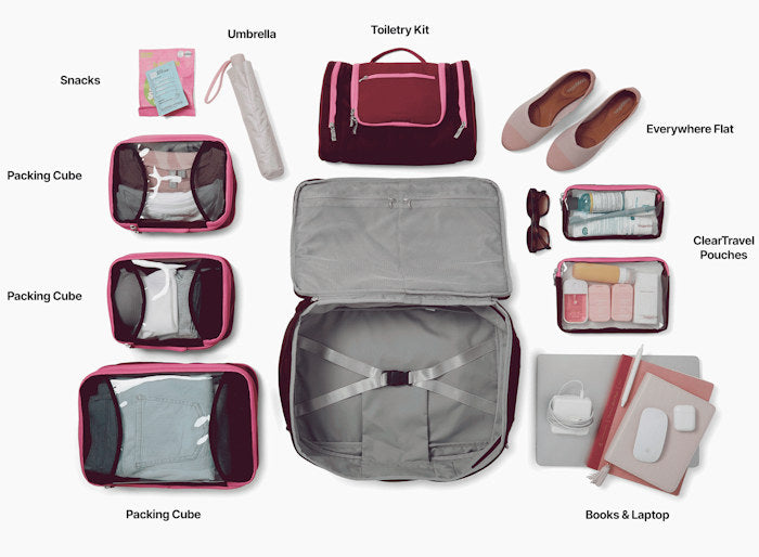 Can fit enough for a 3-day trip of clothing and accessories when expanded