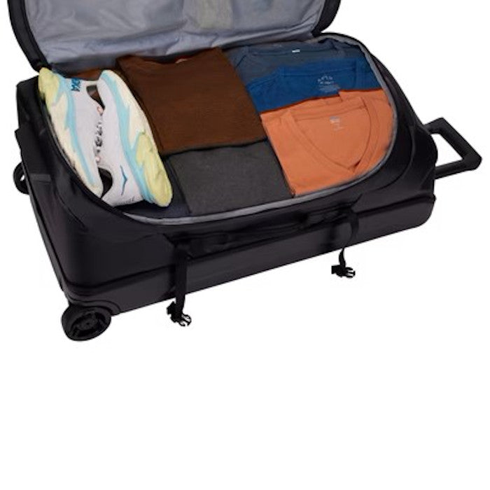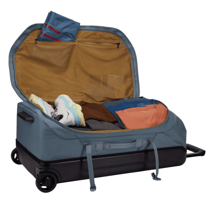 A wheeled duffel for far-flung adventures. The travel duffel's wide, oversized mouth opening means it is super easy to pack, and the internal zippered mesh pockets help keep dirty items separate. On your journey, the external compression straps make sure your items stay in place.