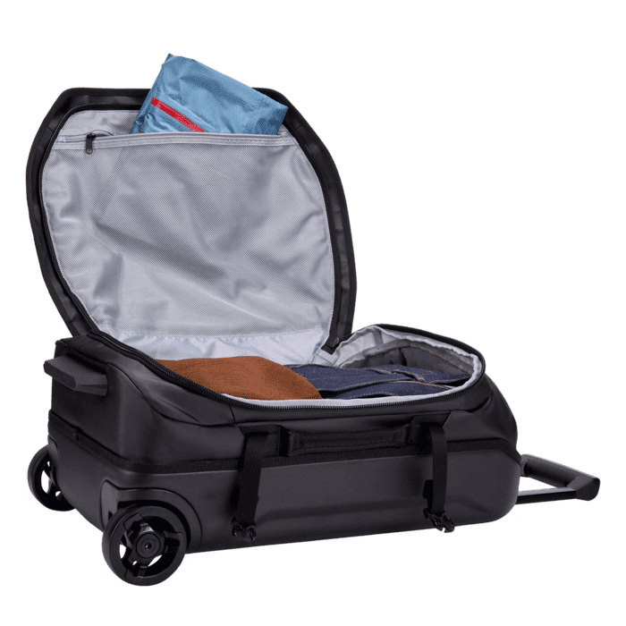 A wheeled duffel built for any adventure. The large internal mesh pocket separates clean from dirty items, and the external compression straps helps you adjust the bag's size according to how much you're packing.