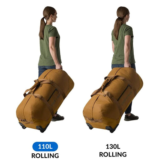 The innovative No Matter What Rolling Duffel 110L. This sustainable, functional, and versatile bag can easily be tucked inside a closet thanks to its included stuff sack, but it truly shines when taken on adventurous journeys. Made with heavy-duty wheels and 100% recycled ripstop fabric, it withstands moisture and abrasion while maintaining its timeless style. With multiple carry options and a simplistic design, it's the ultimate duffel for any transition, from road trips to laundry days to air travel. Also in 130 Liter capacity