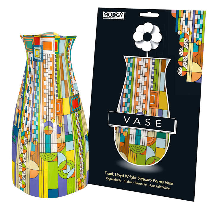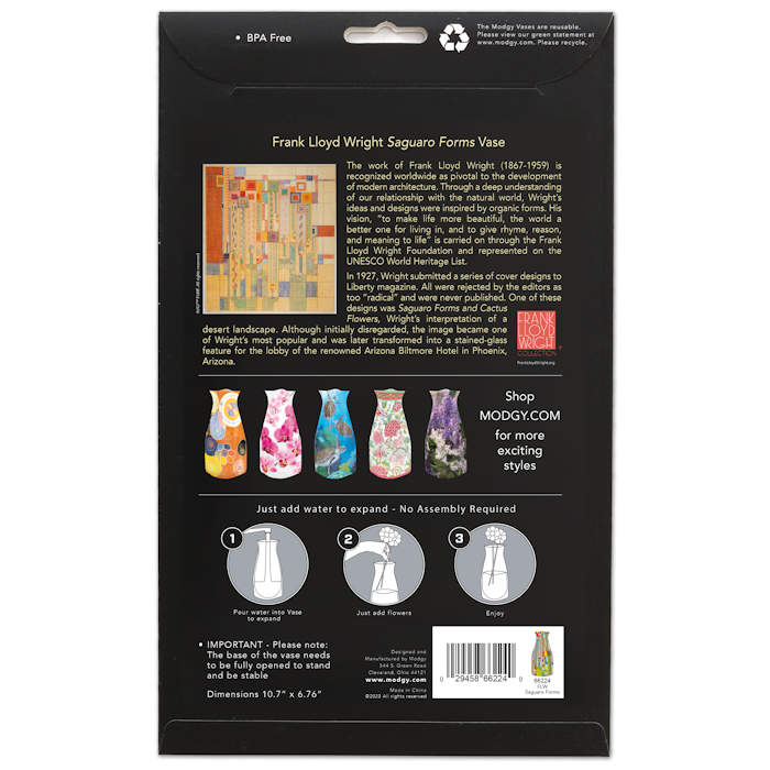 Surround flowers and greens in a vase inspired by Wright's famous 1927 design. Durable, expandable and reusable pieces made of BPA-free plastic that won't break, chip or collect Dust.