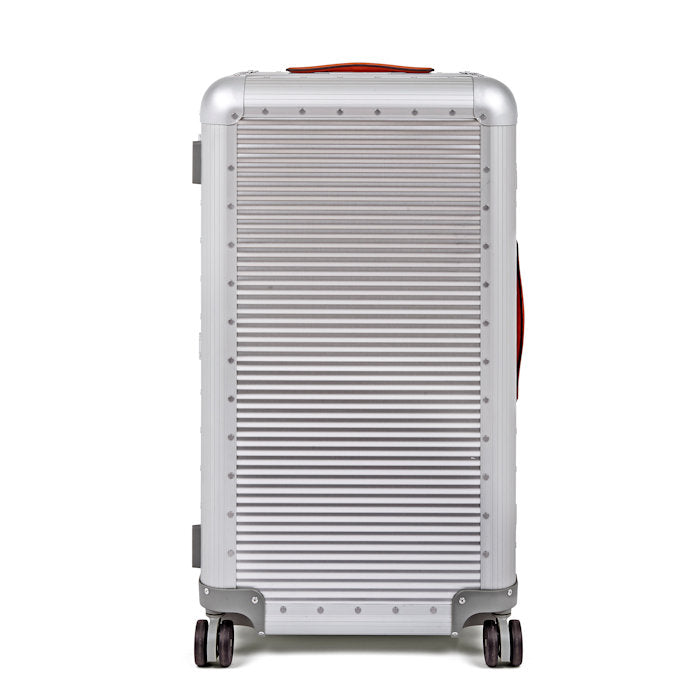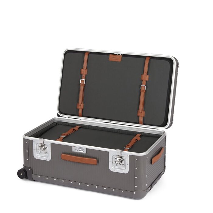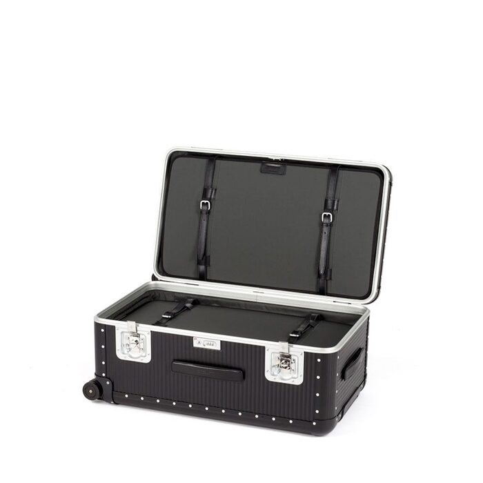 100% Aluminum, 4-wheeled made in Italy suitcase. The wheels guarantees great stability and smoothness. The suitcase has a TSA lock incorporated combined with two maxi butterfly locks that ensures safety. The handles are in fine Italian leather. The interior of the suitcase include handcrafted leather belts. The lining is padded and removable. The interior organizer allows for optimum arrangement of contents. Ideal for 13/14-day journeys.