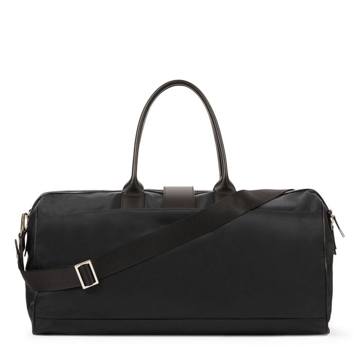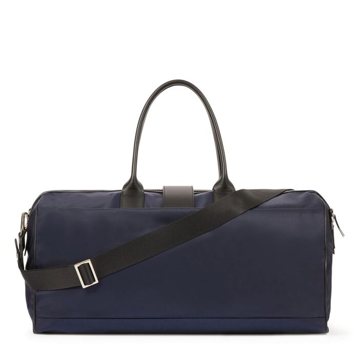 ECONYL® regenerated strong and high-quality waterproof nylon with italian leather sides and bottom. 5 metal feet. 2 classic leather handles. Signature FPM butterfly lock and luggage tag. Interior lined with italian canvas. Ideal for weekend or business travels