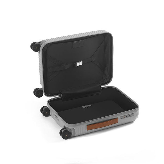 Premium polycarbonate, meticulously designed to embody both featherweight durability and functionality. Its defining feature is the innovative zip closure, seamlessly blending style with convenience. The distinctive elastic band, adorned with an embroidered logo, elegantly fastens alongside the iconic aluminum butterfly lock—a timeless hallmark of the brand.