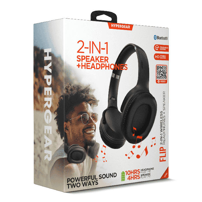 Flip 2-in-1 Wireless Headphones + Speaker. Ultra-lightweight, foldable, noise-isolating fit, three EQ modes, and up to 10 hours of playtime. Enjoy private listening or speaker mode for sharing.