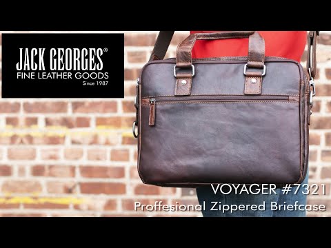 The Voyager Double Entry Top Zip Slim Briefcase is crafted from full-grain buffalo leather that builds a rich, deep patina as it ages. The bag has a two-compartment design with carrying handles, zippered front, and back compartments, a padded section that will hold laptops with up to a 15" screen, and organizer pockets to hold your mobile device, accessories, and your pens. Zippered front and back pockets provide convenient storage for your mobile phone and anything that you need to keep within easy reach while you're on the go. The bag has an adjustable/removable shoulder strap for your carrying comfort and a D-ring on the gusset to clip your keys or needed essentials.