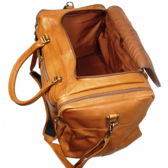 - Wide-mouth u-shaped opening reveals an easy to pack interior