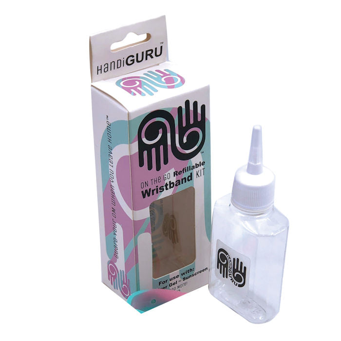Protect your OM when you leave home™. Using the included applicator bottle and tip, fill the silicone band with a gel liquid such as hand sanitizer, sunscreen or even bug repellent. Then squeeze into the palm of your hand when needed.