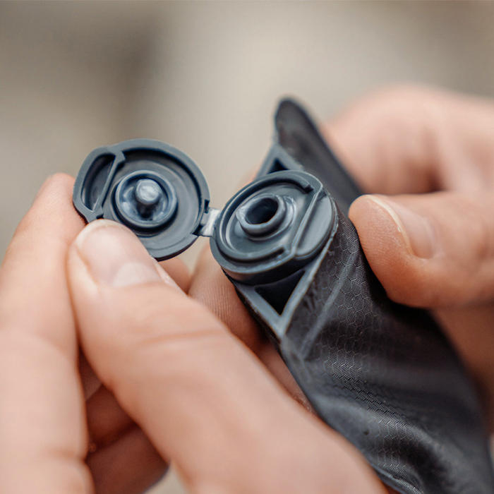 Waterproof 30D Cordura® ripstop nylon; Proprietary welded construction; Hypalon snap loop