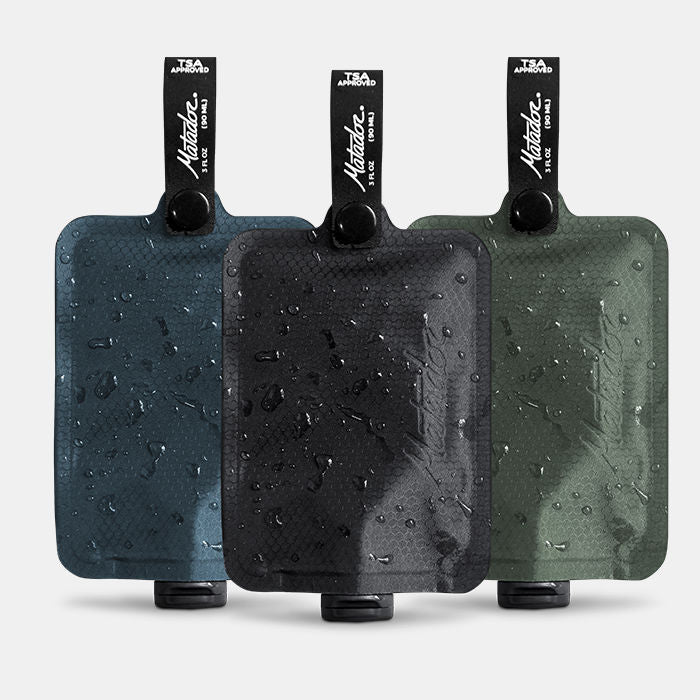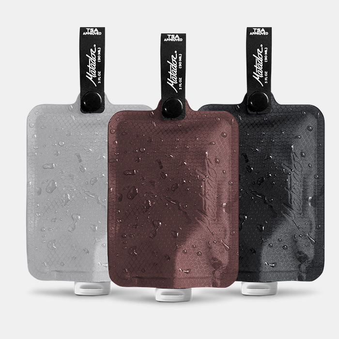 The FlatPak toiletry bottle is an ultralight, space-saving bottle designed for effi cient travel with shampoo, soaps, lotions, and more. Patented.