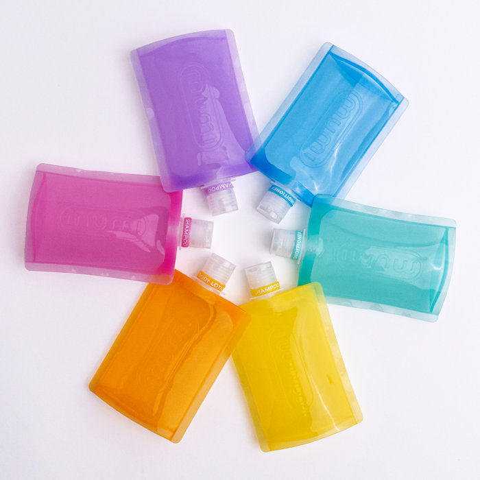 Pour and label your favorite shampoo, soap, lotion and more in wide-mouth, flat-packing bottles made of leak-proof, BPA-free silicone. Several Colors.
