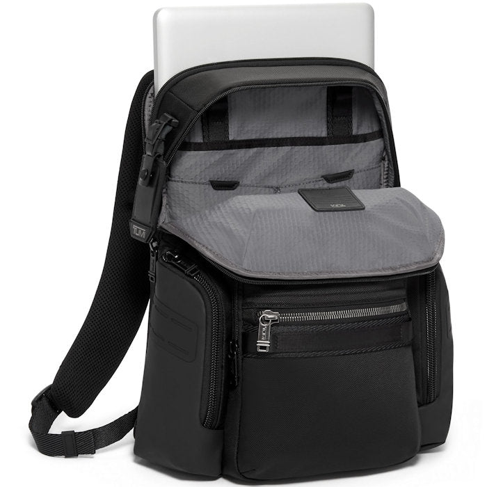 - Padded iPad pocket, Zip pocket, 3 media pockets, 2 card pockets, TUMI Tracer®, key leash, pen holder