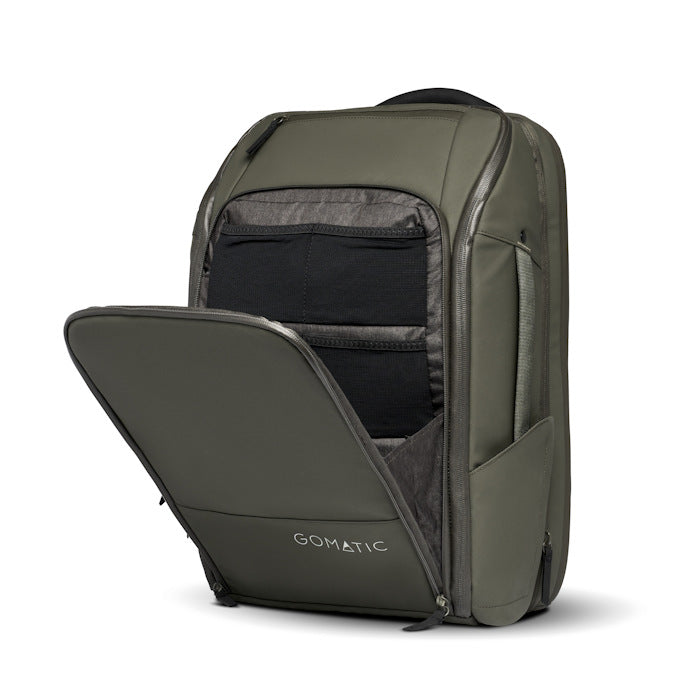 The Travel Pack by Nomatic is your ultimate companion for life's adventures. Our innovative, patented strap system seamlessly transforms this backpack into a sleek briefcase for those professional moments. Navigate airport security effortlessly with the TSA-approved fold-down laptop pocket. Olive.