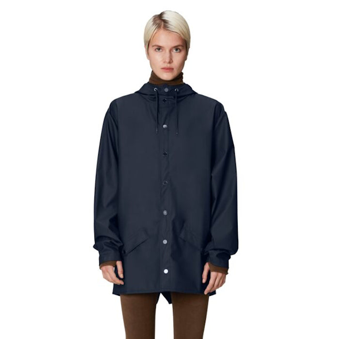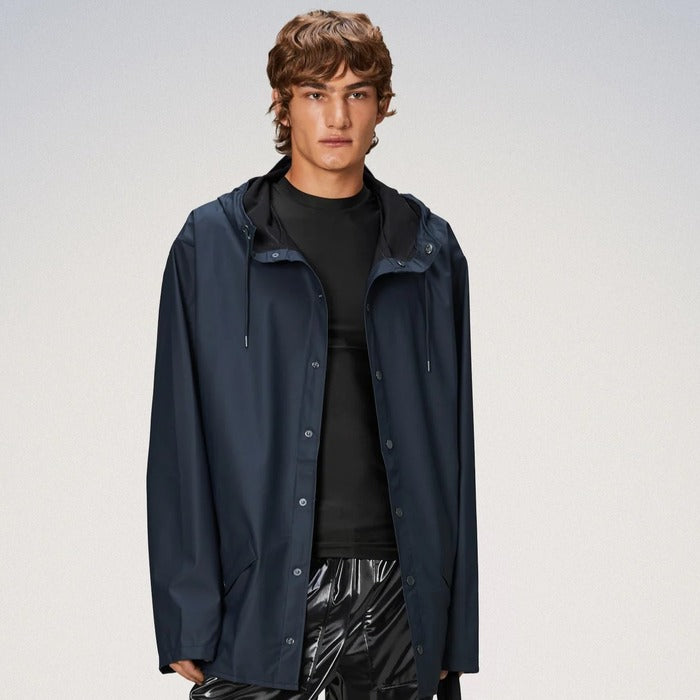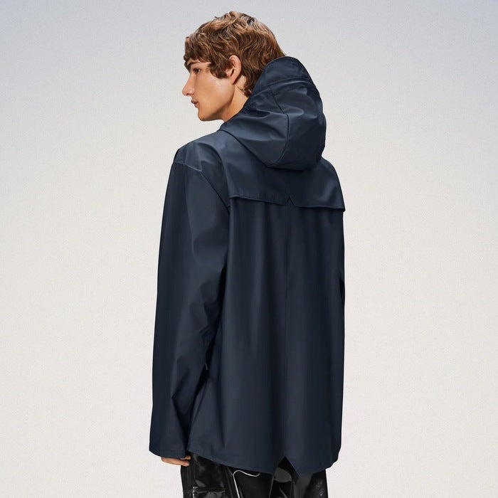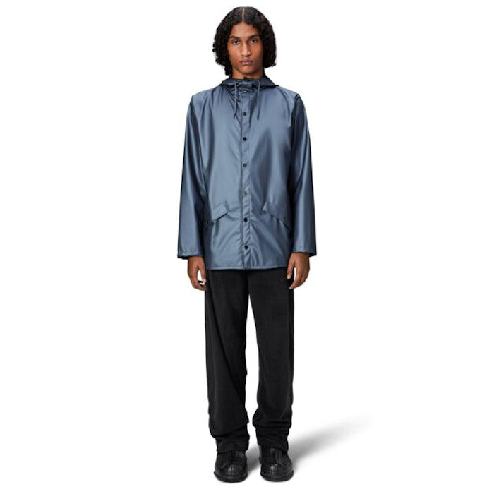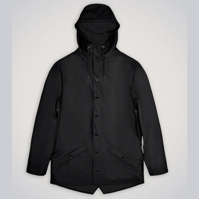 Jacket is an ever-contemporary unisex rain jacket delivering high functionality in a minimal silhouette. Features include double welded slanting flap pockets, adjustable cuffs and a fishtail hem. The look is finished with snap fastenings, under-arm eyelets, and a back yoke with concealed vents.