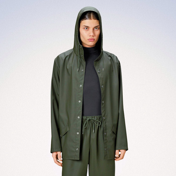 This waterproof jacket is cut from Rains’ signature PU fabric and features ultrasonically welded seams. The finish is lightweight with a soft feel and elegant drape.