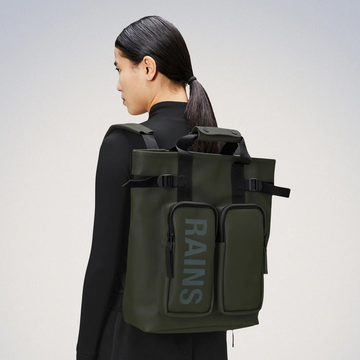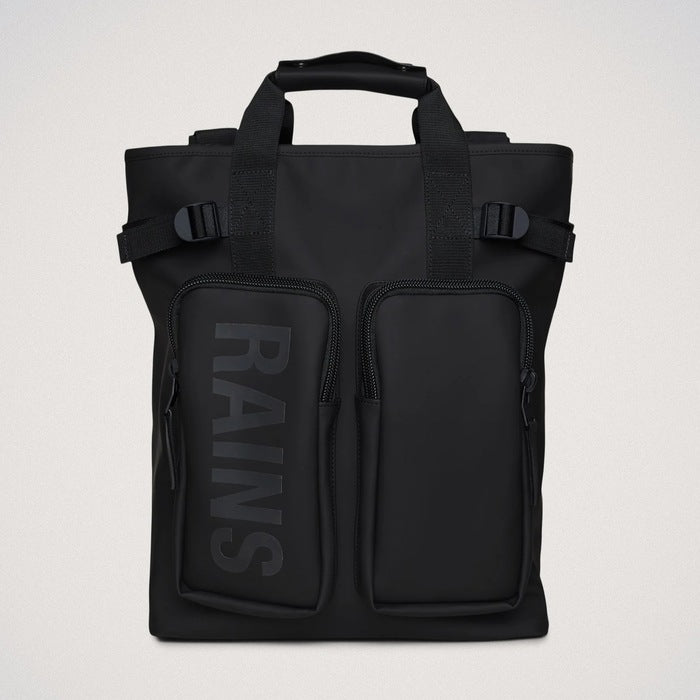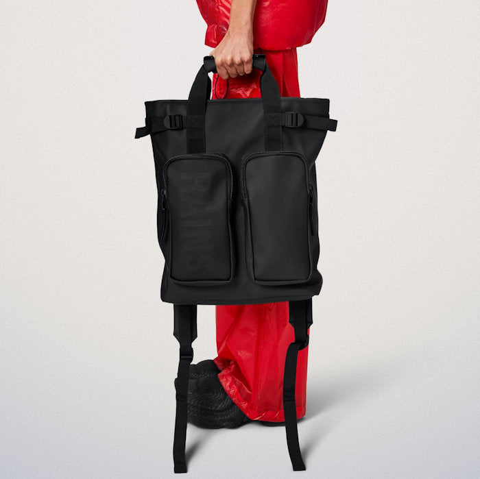 Texel Tote Backpack is constructed from Rains’ signature waterproof PU fabric, engineered for carrying strength, durability, and a smooth feel.
