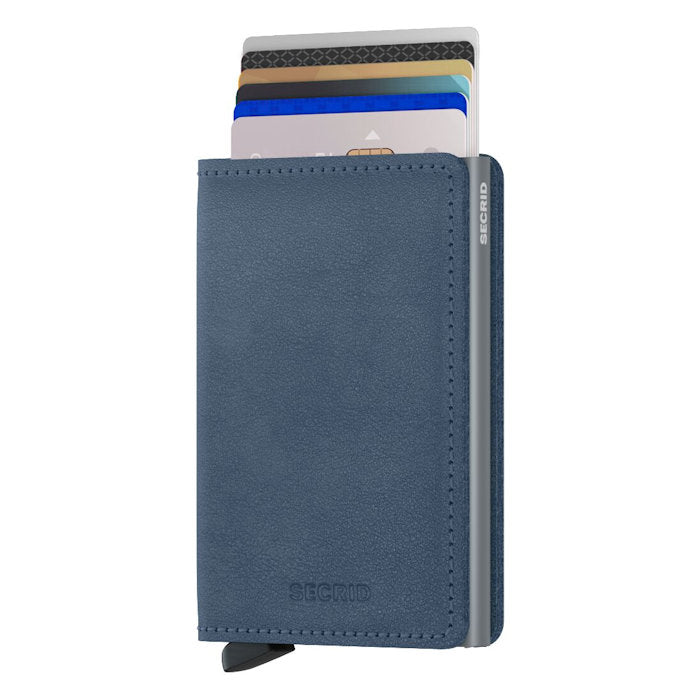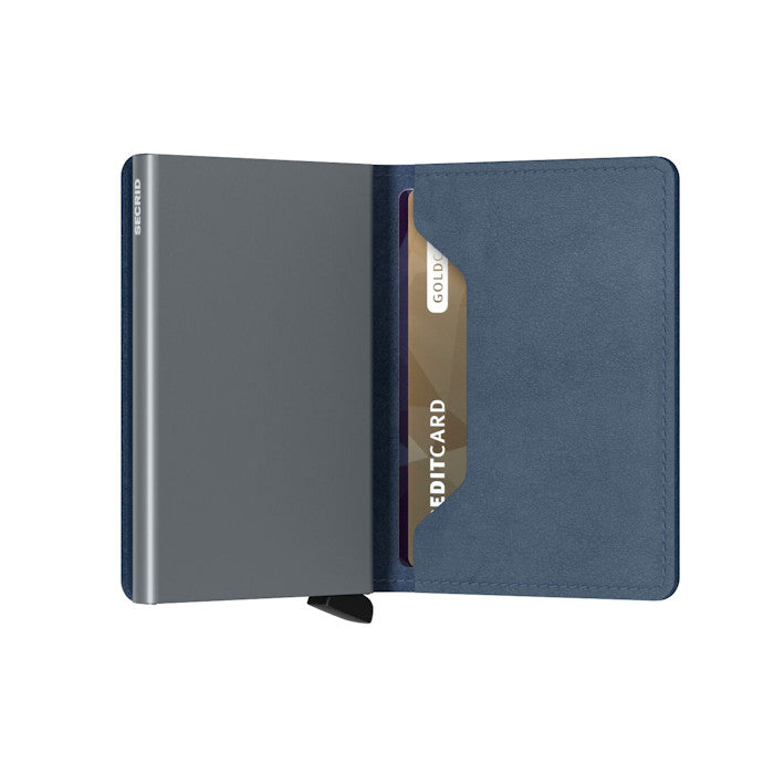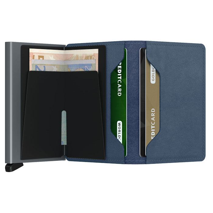 Its slim profile makes the Slimwallet fit perfectly into every pocket. The open exterior is cut extra wide to hold cards, banknotes and receipts. The Cardprotector mechanism enables you to slide out cards with a simple motion, while the aluminium construction protects your cards from bending, breaking and unwanted wireless communication. The Slimwallet's open exterior wrap does not feature a button or magnet closure system.Smooth semi-aniline finish. European cowhide. Holds: