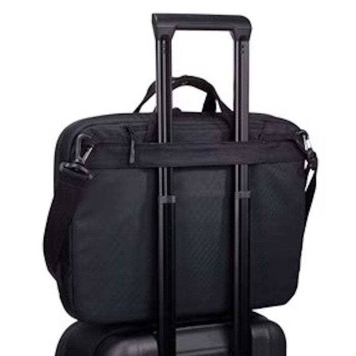 Luggage pass-through strap allows you to attach the attaché to rolling luggage for effortless travel